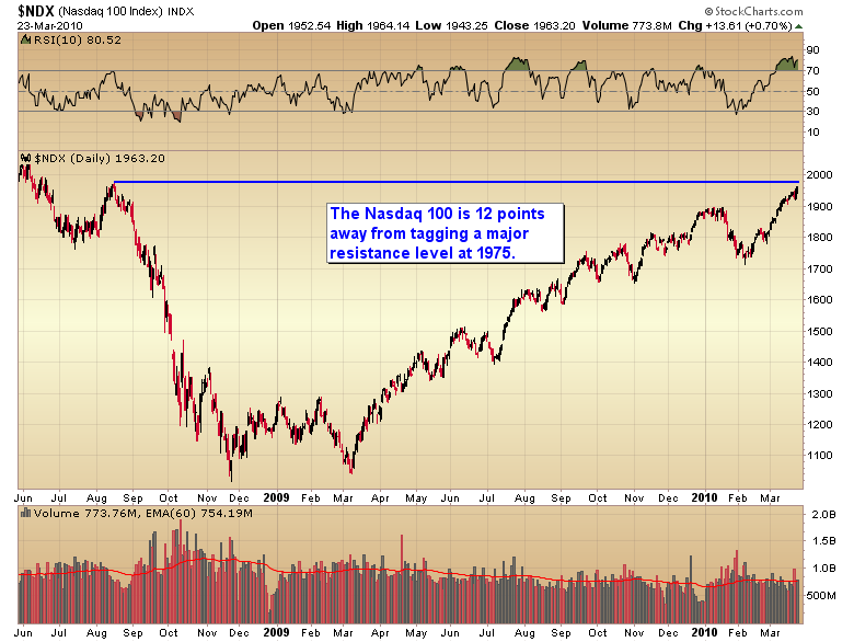 Not to mention the Nasdaq 100 is only 12 points away from major resistance.