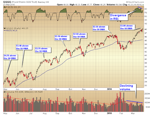 The rally off the February bottom is now going on 32 days. This is probably not the best time to chase stocks higher. I’ve been saying for a couple of weeks that the market needs to take a breather, preferably before earnings season as it would then be setup for a strong rally through April.