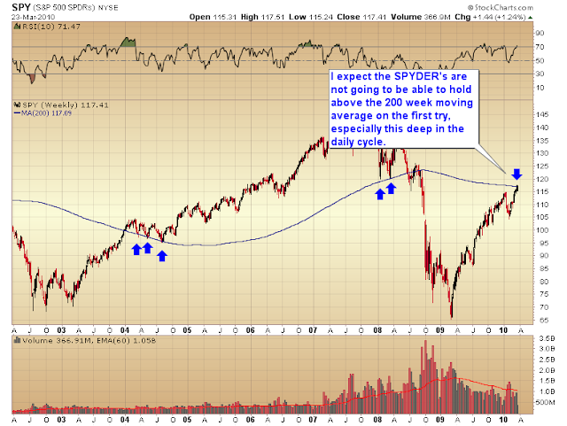 And the SPYDER’s are now bumping up against the declining 200 week moving average.