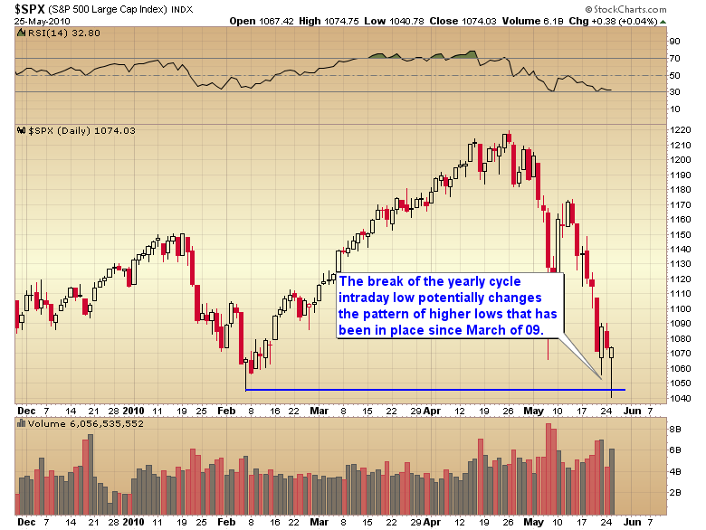 I’ve been warning for over a week now that sentiment has reached severe bearish extremes. Quite a few sentiment indicators are now at levels lower than the `09 bear market bottom. When these kind of extremes are reached the market runs the risk of running out of sellers. Yesterdays reversal may be a signal of selling exhaustion. When that happens, even in bear markets, we can look for a violent 1 to 3 month short covering rally. (In bull markets we can expect a 3 to 5 month new leg up.)