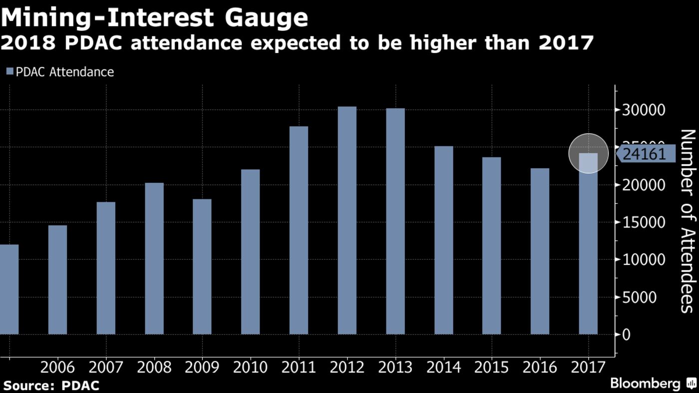 While the official number isn’t out yet, organizers are expecting attendance for the PDAC conference in Toronto to be higher than last year, which was in turn an improvement on 2016.