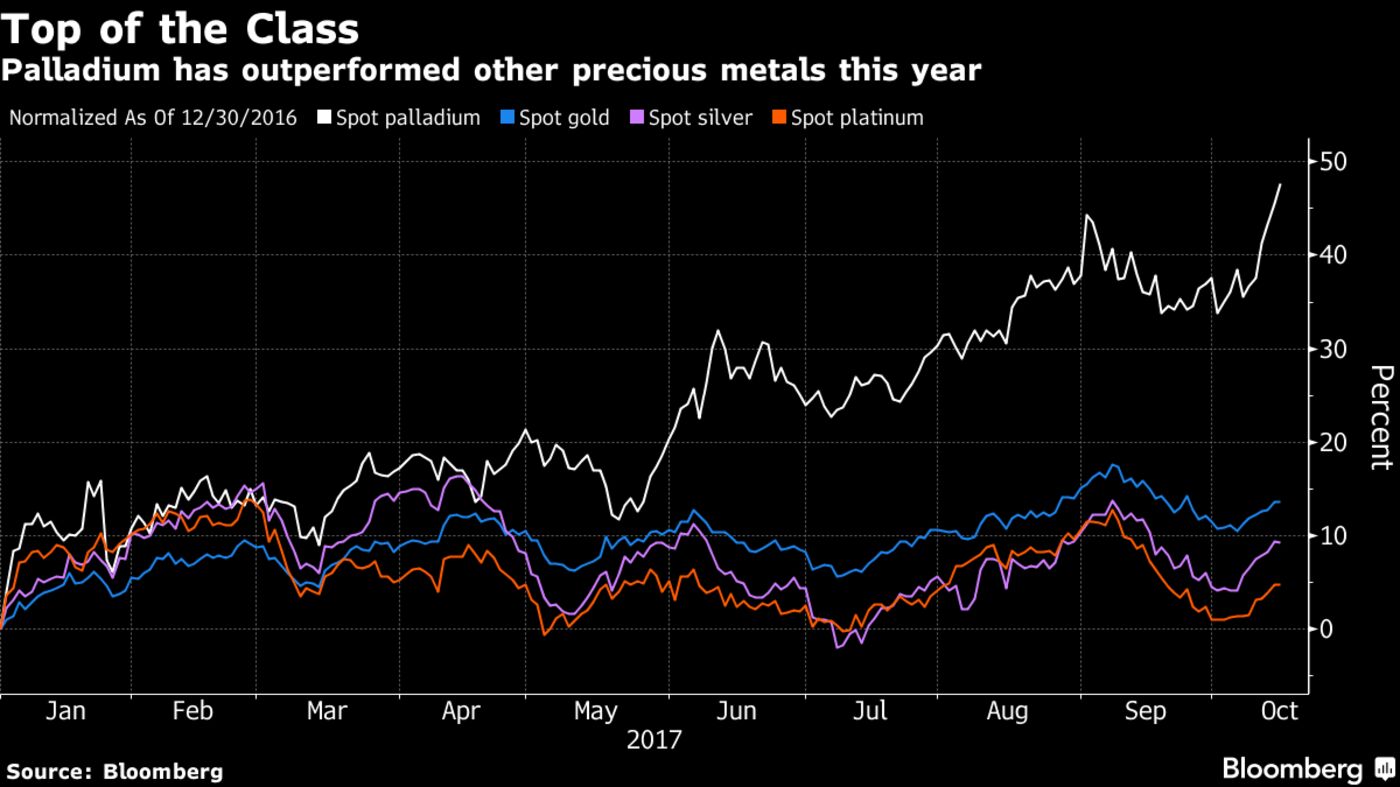 Palladium is one of this year’s best-performing commodities, advancing 48 percent, more than three times the increase in gold and about 10 times the gain in its sister metal platinum.