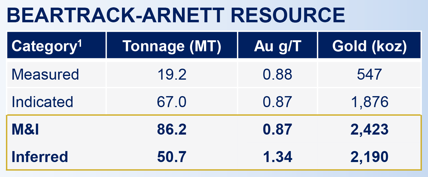 On its own, Beartrack-Arnett is a 4.6 Moz infrastructure-backed gold system with both near-term restart potential and high-grade underground upside.