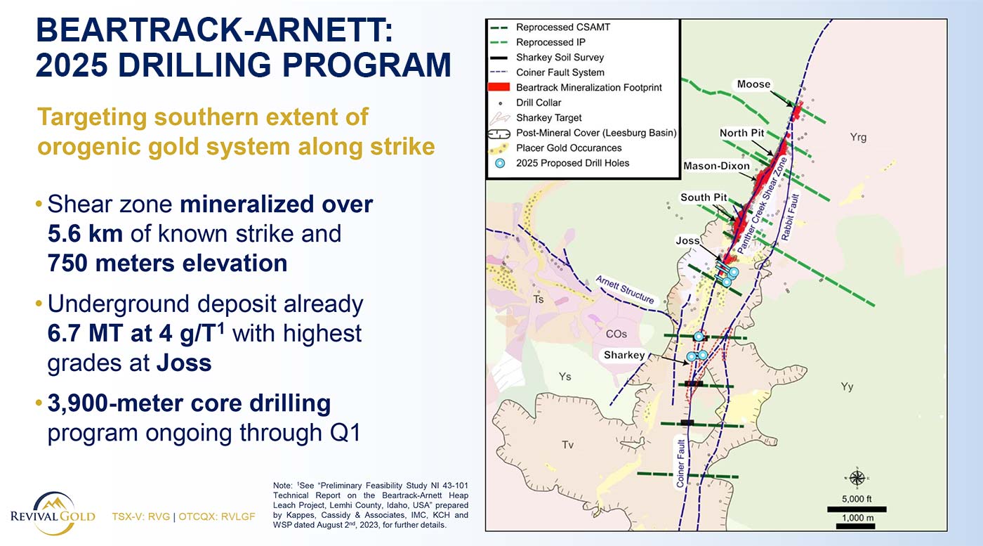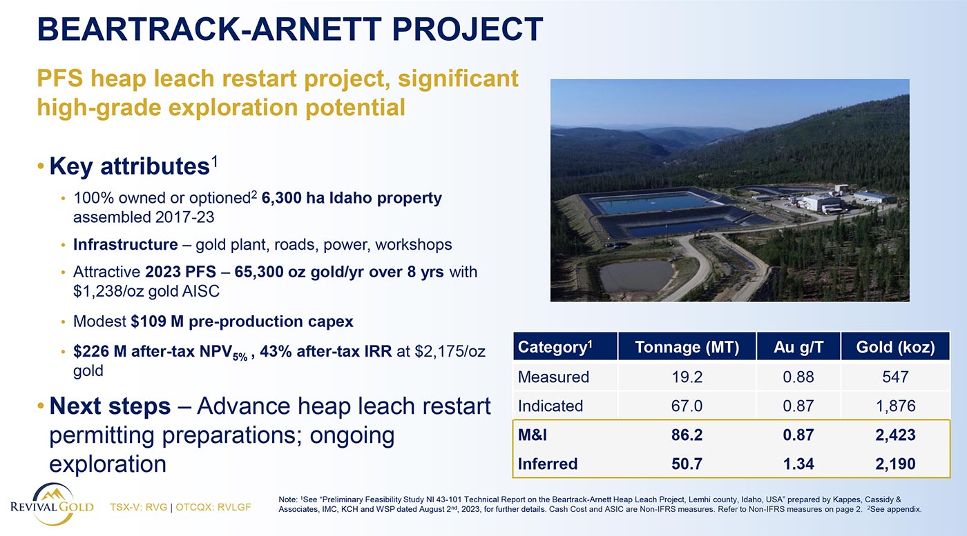 Cashed-up, and with Mercur setting the path toward near-term gold production, we now turn to Revival’s second co-flagship project, which hosts an even larger gold endowment: Beartrack-Arnett.