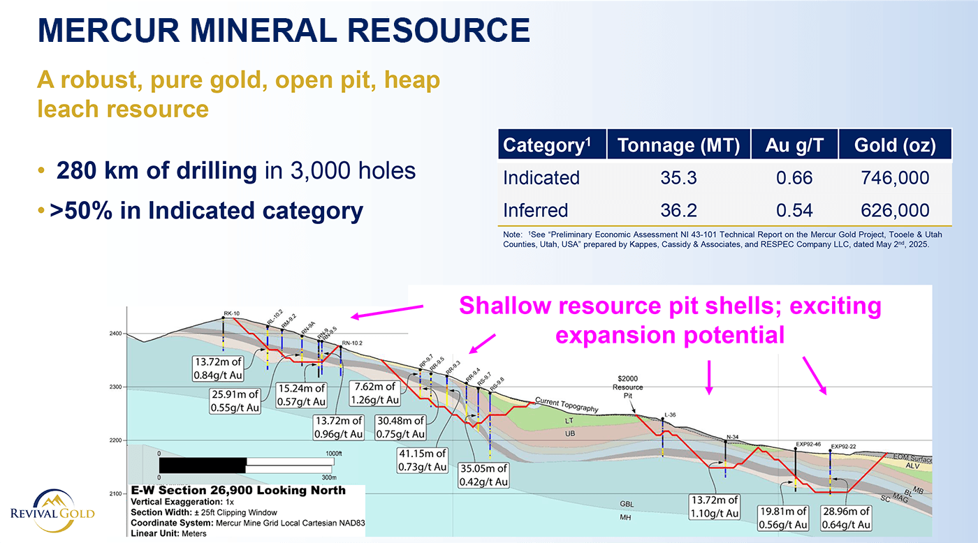 Mercur — a PEA-stage heap-leach gold project in Utah with 1.4 million ounces Au (Measured & Indicated plus Inferred) being fast-tracked toward production.