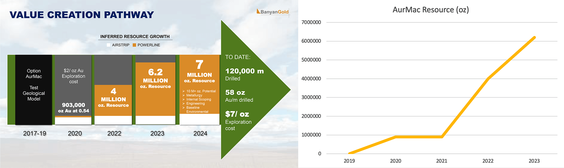Importantly, Banyan Gold made the initial discovery at AurMac back in 2019 (beginning with what is now the 6.2 Moz Au Powerline deposit) and has systematically grown the Inferred resource via the drill-bit ever since.