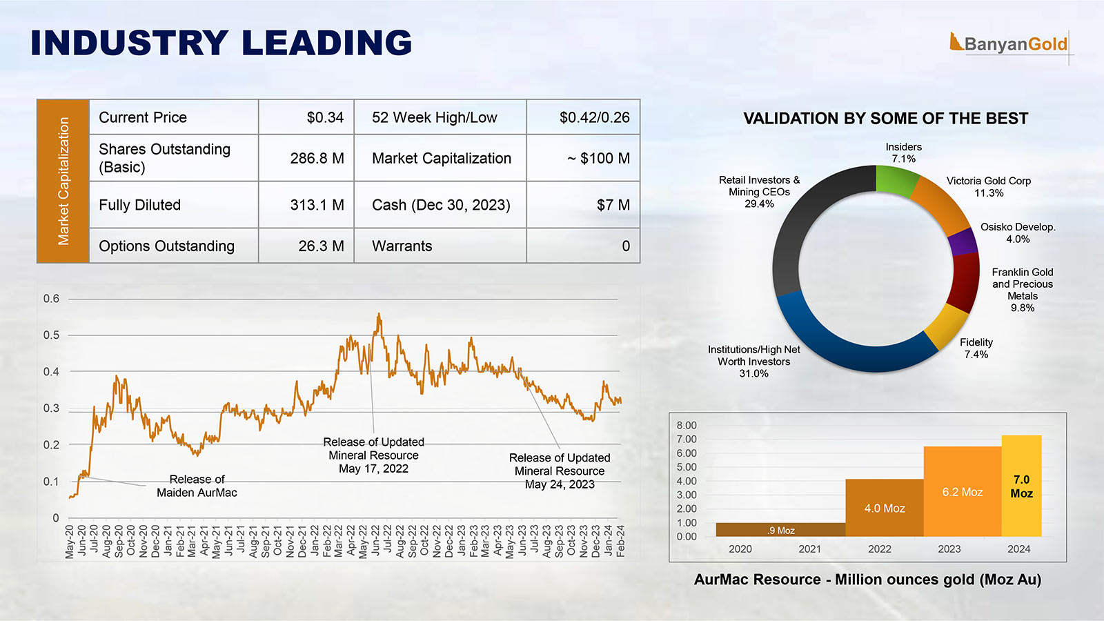Banyan Gold is also well-owned by financial institutions and larger mining firms (see below).