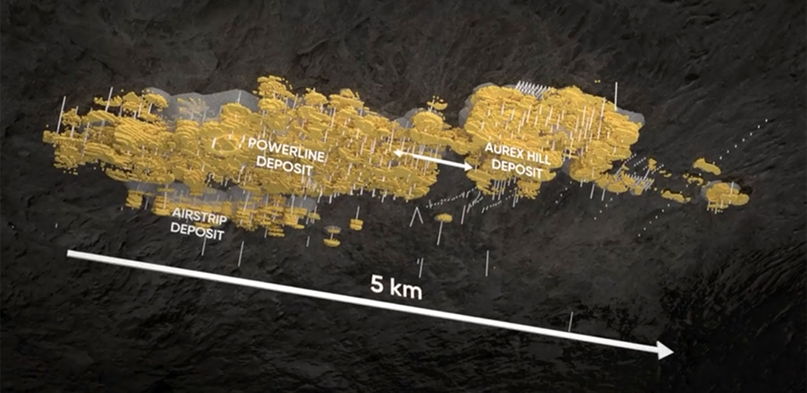 The Powerline deposit, which is the larger of the two, produced an Inferred Mineral Resource of 312.2 million tonnes at an average gold grade of 0.61 g/t for a total of 6.2 Moz Au.