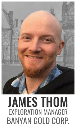 Mr. James Thom joins Banyan Gold as exploration manager and brings nearly 30 years of experience in developing drill targets from grassroots exploration surveys across multiple continents, as well as experience in developing geological models and target refinement from more advanced stages of exploration.