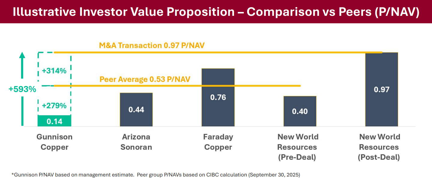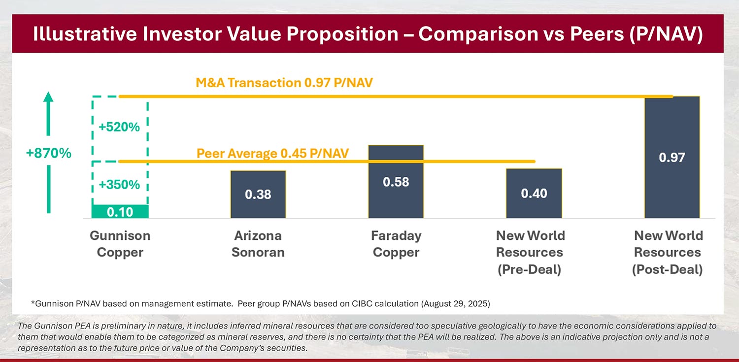 For the Gunnison project — that’s the flagship. Investors are buying us because they want to see that project and see us re-rate to the peer group. Right now, our price-to-NAV is about 0.15. Our peers in Southern Arizona are trading around 0.45, which implies a triple in our market cap just to catch up.