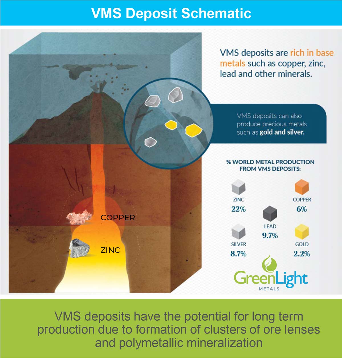 VMS systems are especially relevant in this setting as they naturally host multiple payable metals within a single geological system, often delivering copper-dominant economics with meaningful gold, silver, and zinc credits.