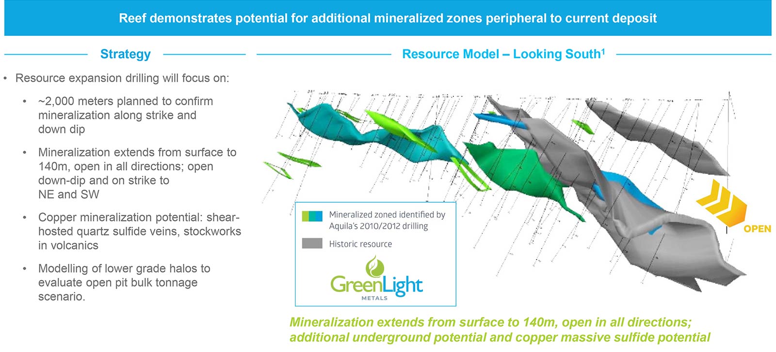 Mineralization remains open along strike and down dip with only limited historical drilling completed.