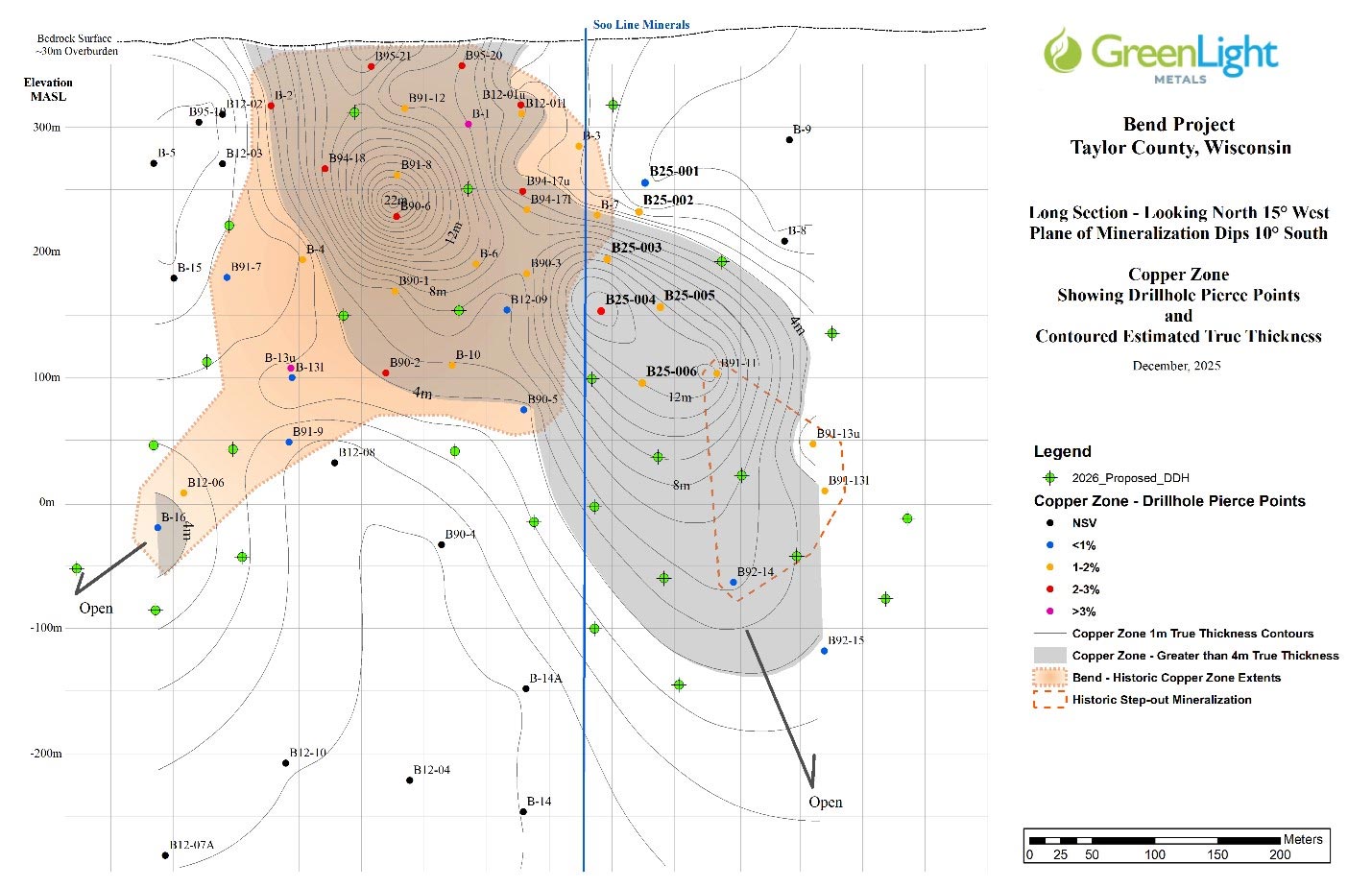 “The completion of our Phase-1 program marks a significant milestone for the Bend project with all six holes successfully intersecting mineralization and confirming our geological model. The results from B25-006 are particularly encouraging — the intercept shows both increased thickness and robust grades approximately 65 meters down-dip from B25-005, continuing the pattern of strengthening mineralization we’ve observed throughout this program. The consistency of these results, combined with the presence of high-grade copper and gold across multiple holes, reinforces our confidence in the deposit’s expansion potential.”