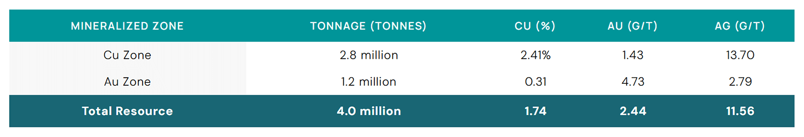 - Zinc-dominant mineralization with copper, gold, and lead credits