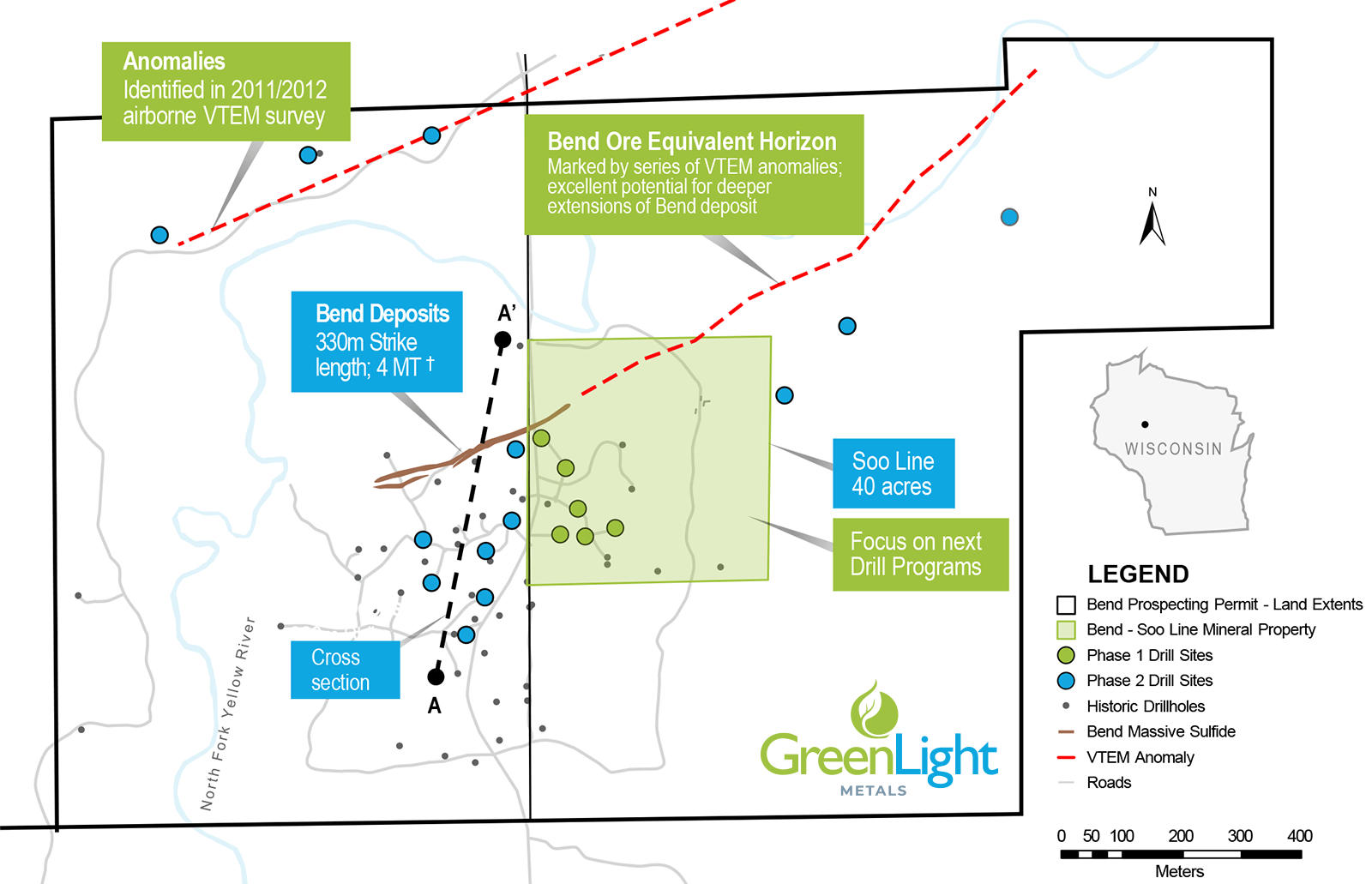 With the flagship Bend project anchoring GreenLight Metals’ district-scale strategy — and with Phase-2 drilling now underway — the company has assembled a broad Wisconsin-focused portfolio spanning copper, gold, silver, and zinc.