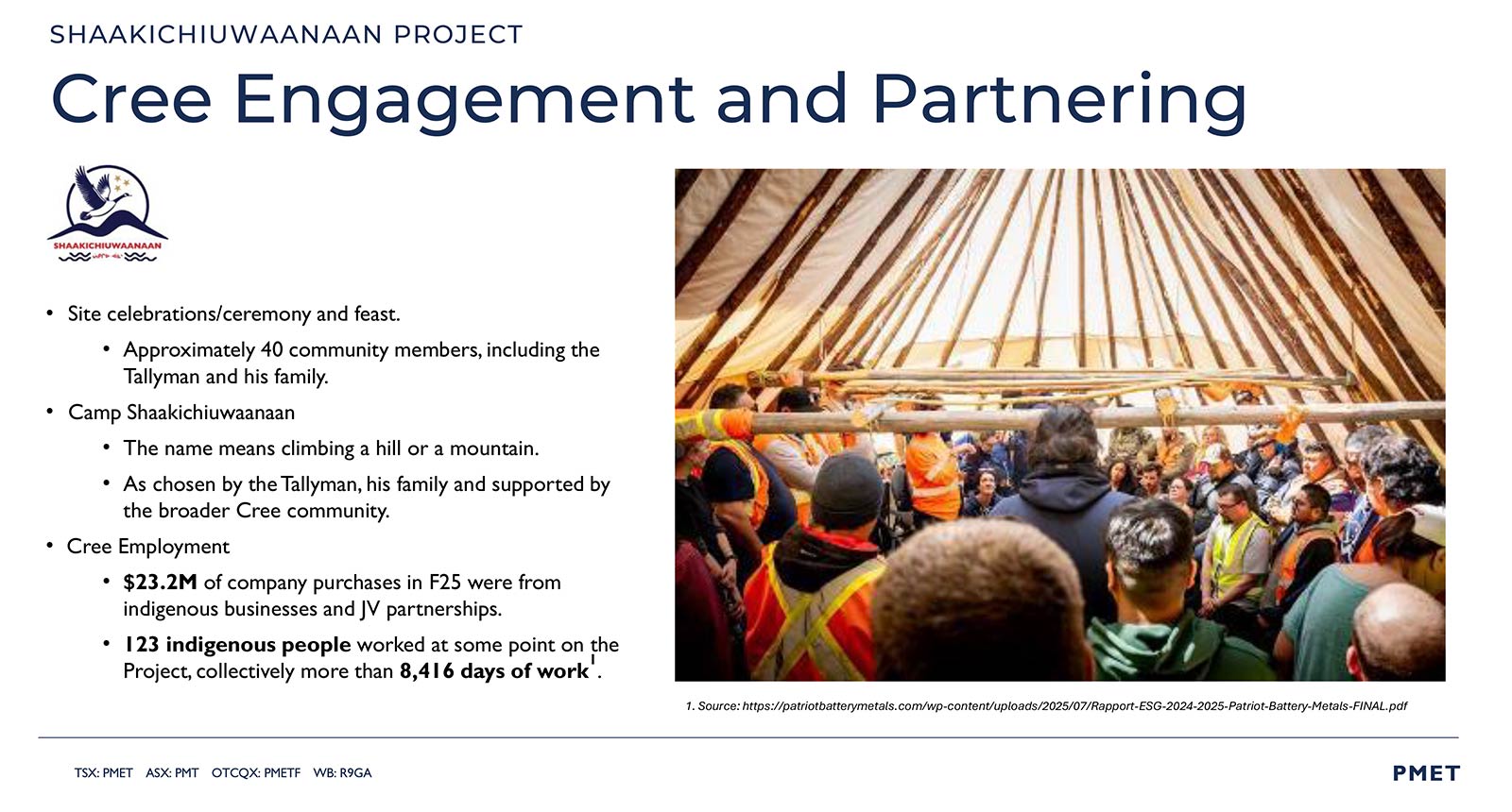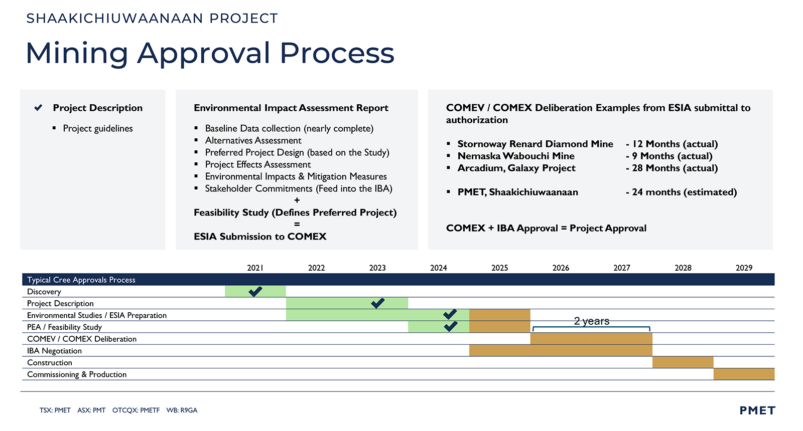 With both federal and provincial Environmental and Social Impact Assessments (ESIAs) expected to wrap by yearend, PMET is targeting mine authorization via COMEX within 12 to 24 months — placing Shaakichiuwaanaan well ahead of global peers navigating slower, riskier permitting regimes.