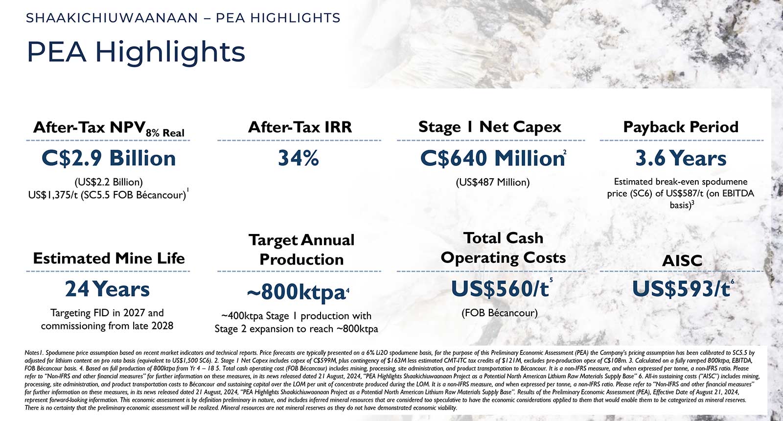 A 2024 Preliminary Economic Assessment (PEA) underscores the strong economics of a staged lithium-only development plan at CV5.