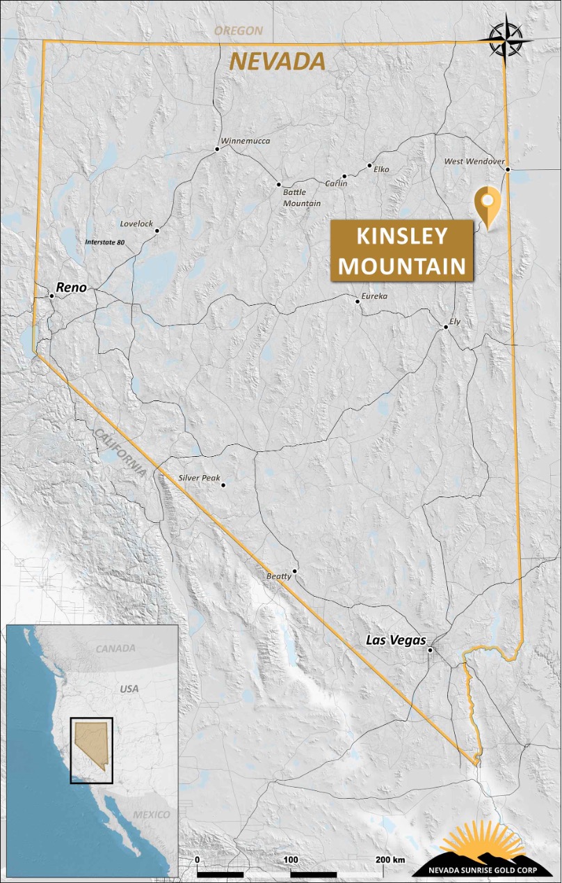 Nevada Sunrise’s co-flagship is the Kinsley Mountain Gold Project, Nevada, which has a resource and is being advanced via a joint venture with CopAur Minerals (TSX-V: CPAU)(OTC: COPAF).