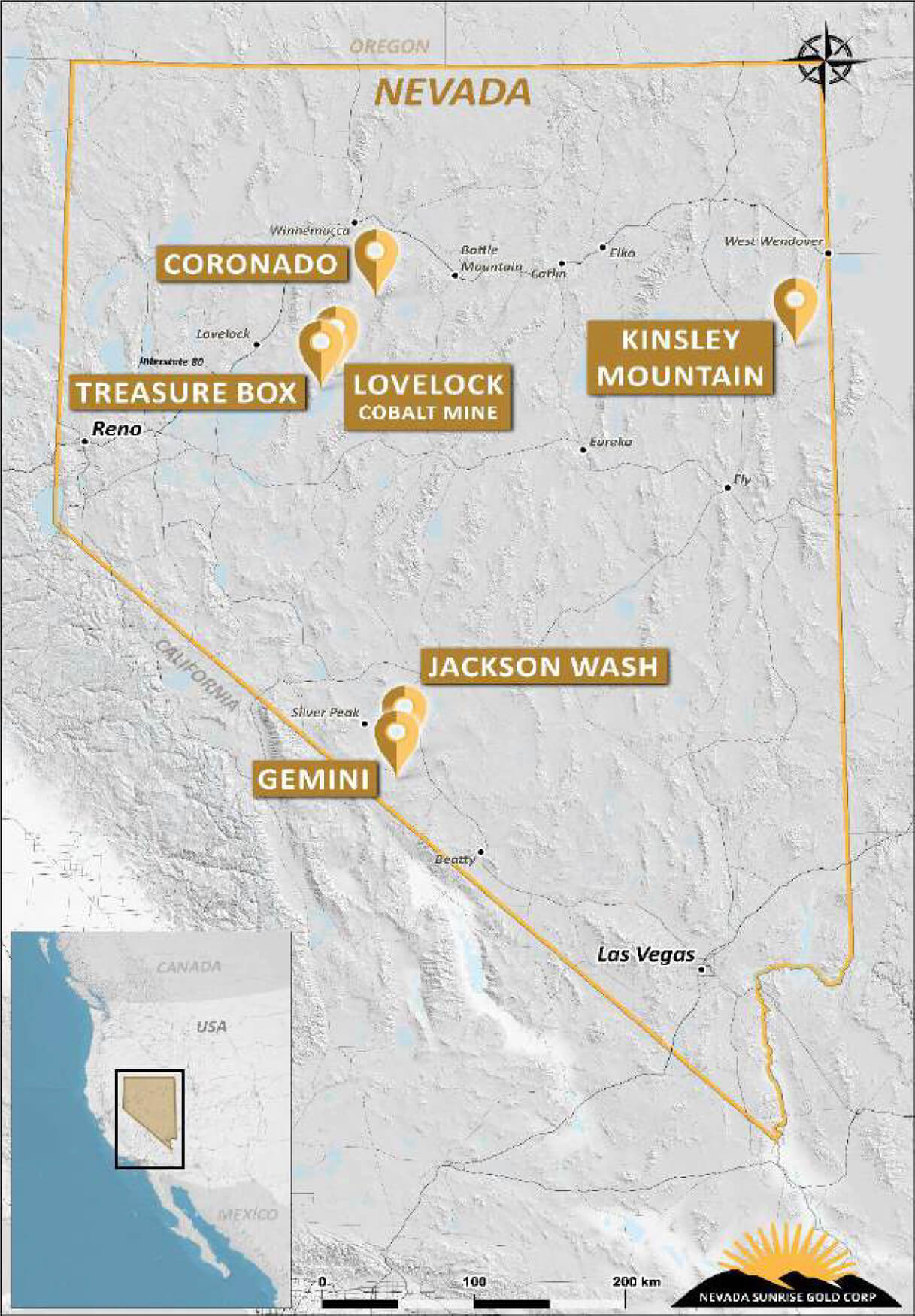 By way of its intelligent growth strategy, the Nevada Sunrise team has the nimbleness and flexibility to focus on key 100%-owned projects — such as the flagship Geminin Lithium Project — while simultaneously optioning out other projects to be developed on other companies' dimes such as the co-flagship Kinsley Mountain Gold Project.