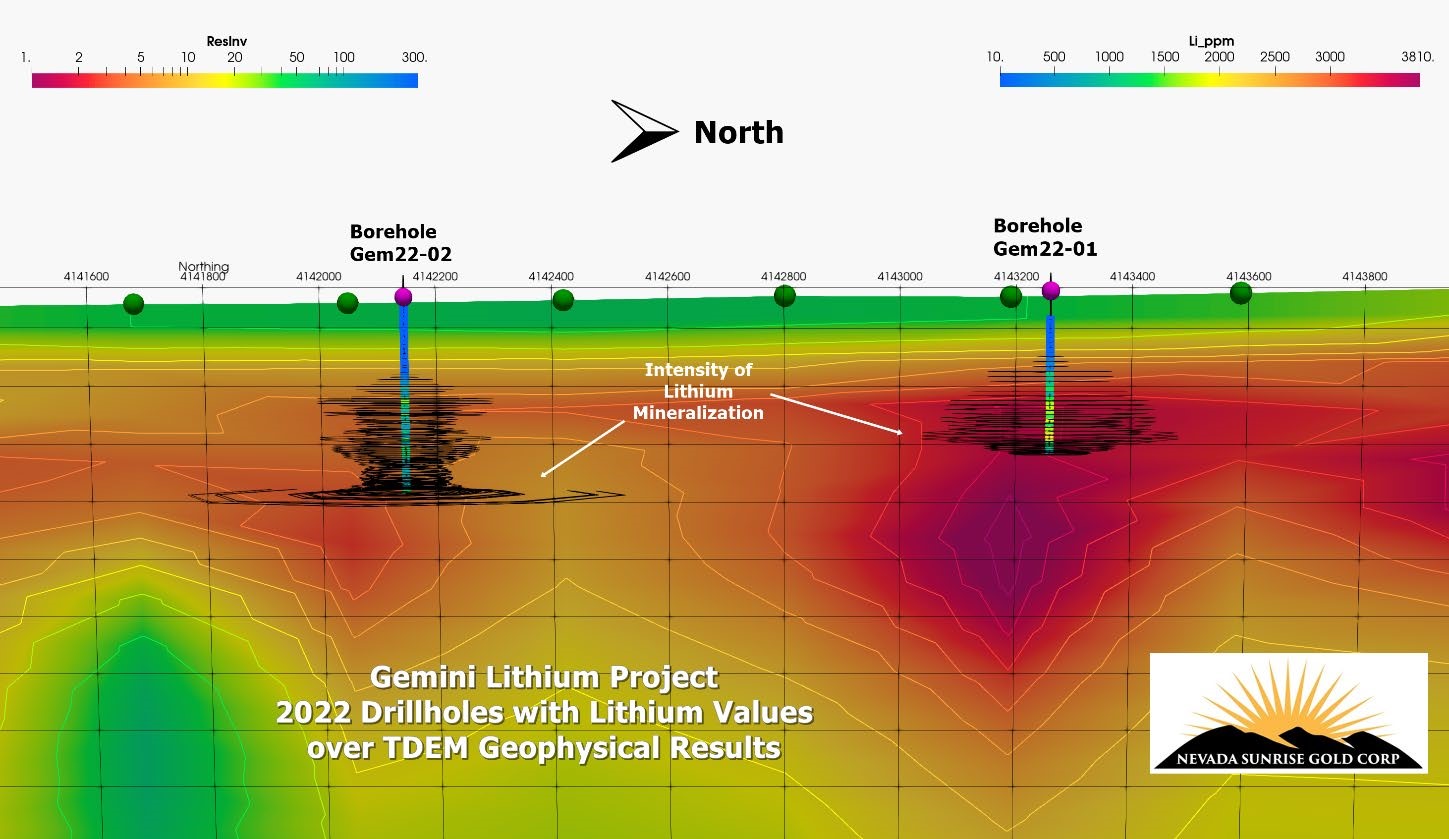 In Q3 2022, Nevada Sunrise announced preliminary results of a ground geophysical TDEM (time-domain electromagnetic) survey for Gemini.