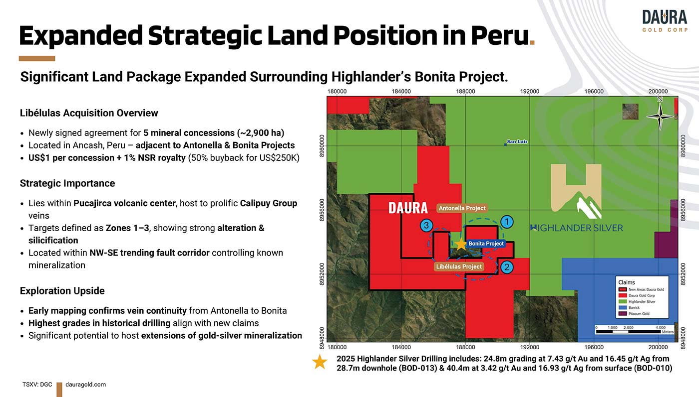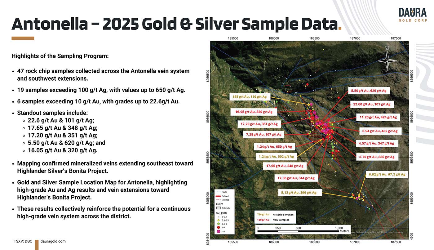 Importantly, Daura is exceptionally well funded to execute its near-term exploration and drill plans, having recently closed a C$7 million financing that provides the flexibility to move Antonella forward while continuing to build out its broader gold-silver portfolio.