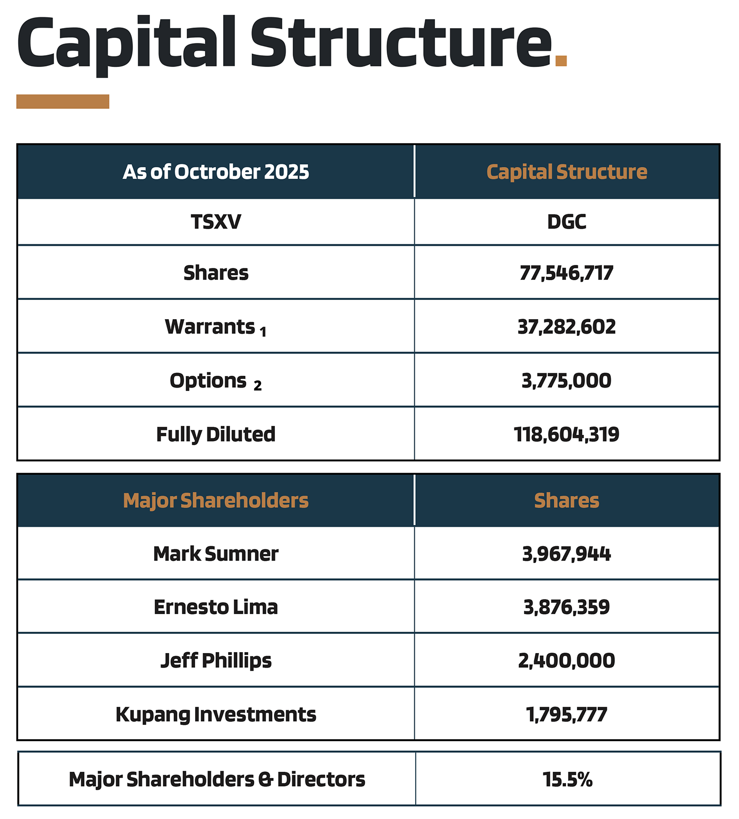 With ~77.5 million shares outstanding on a non-fully-diluted basis and a market capitalization well below C$40 million, DGC maintains a tight share structure that offers meaningful leverage to each new phase of exploration and drilling.