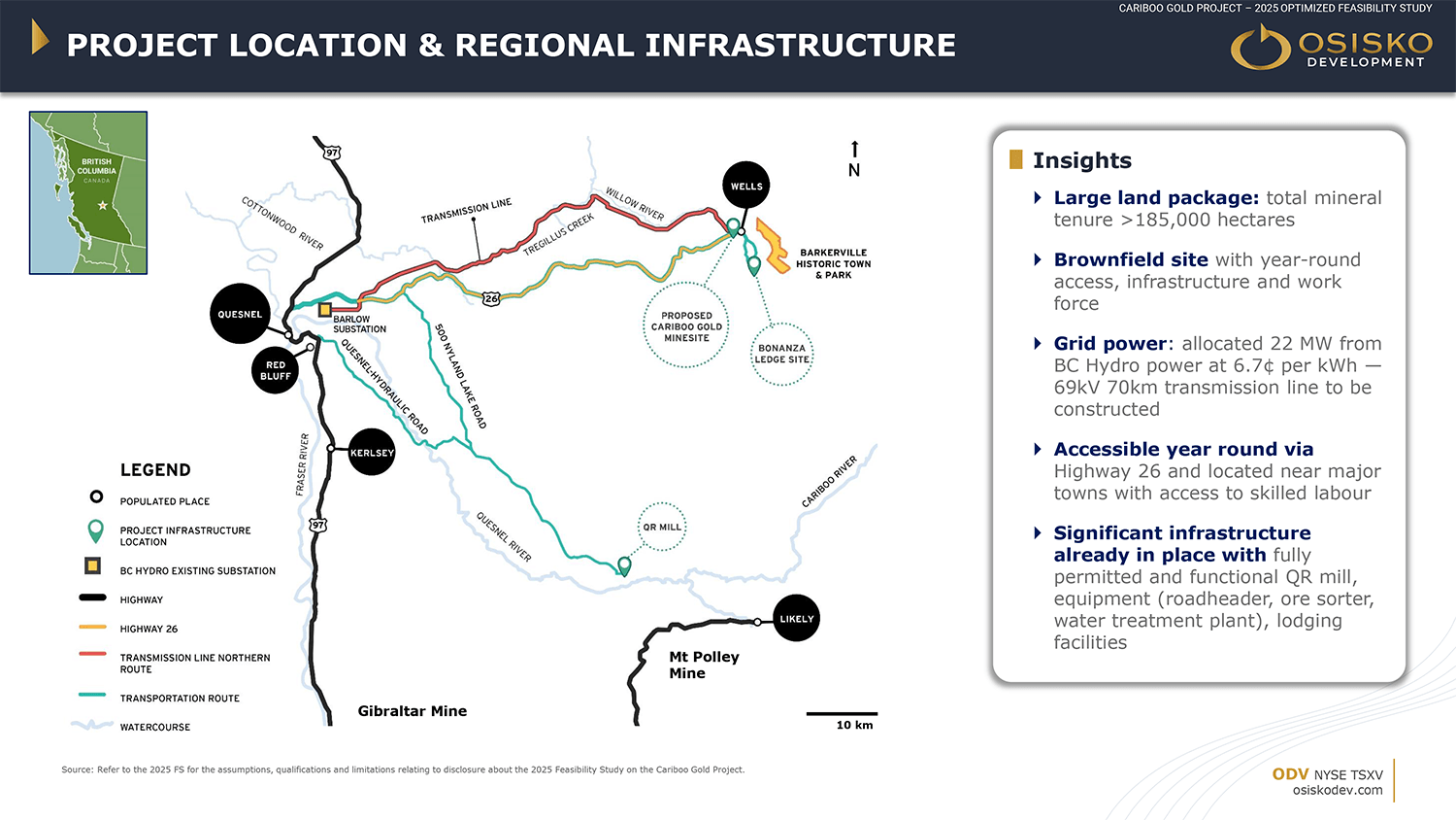 Information relating to the Cariboo Gold Project and the 2025 Feasibility Study is supported by the technical report titled "NI 43-101 Technical Report, Feasibility Study for the Cariboo Gold Project, District of Wells, British Columbia, Canada" and dated June 11, 2025 (with an effective date of April 25, 2025) (the "Technical Report"). For readers to fully understand the information in the Technical Report, reference should be made to the full text of the Technical Report in their entirety, including all assumptions, parameters, qualifications, limitations and methods therein. The Technical Report is intended to be read as a whole, and sections should not be read or relied upon out of context. The Technical Report was prepared in accordance with NI 43-101 and is available electronically on SEDAR+ (www.sedarplus.ca) and on EDGAR (www.sec.gov) under Osisko Development's issuer profile and on the Company's website at www.osiskodev.com.