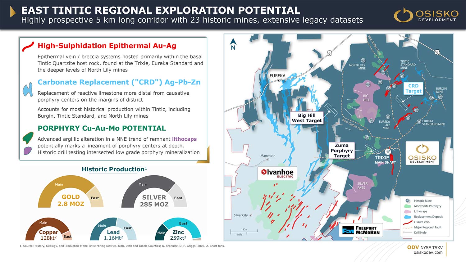 Additionally, ODV’s Tintic Gold-Copper Project, Utah, delivers upside on multiple fronts — from porphyry-scale copper-gold potential to high-grade fissure zones at the past-producing Trixie deposit.