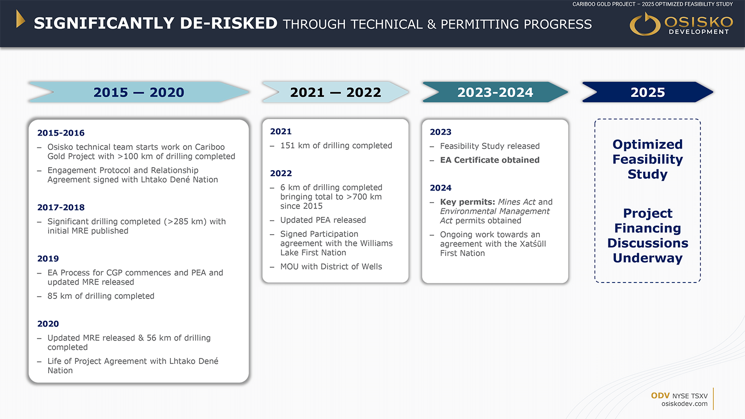 Osisko Development Corp. trades on the NYSE under the symbol ODV and on the Toronto Venture Exchange under the symbol ODV.