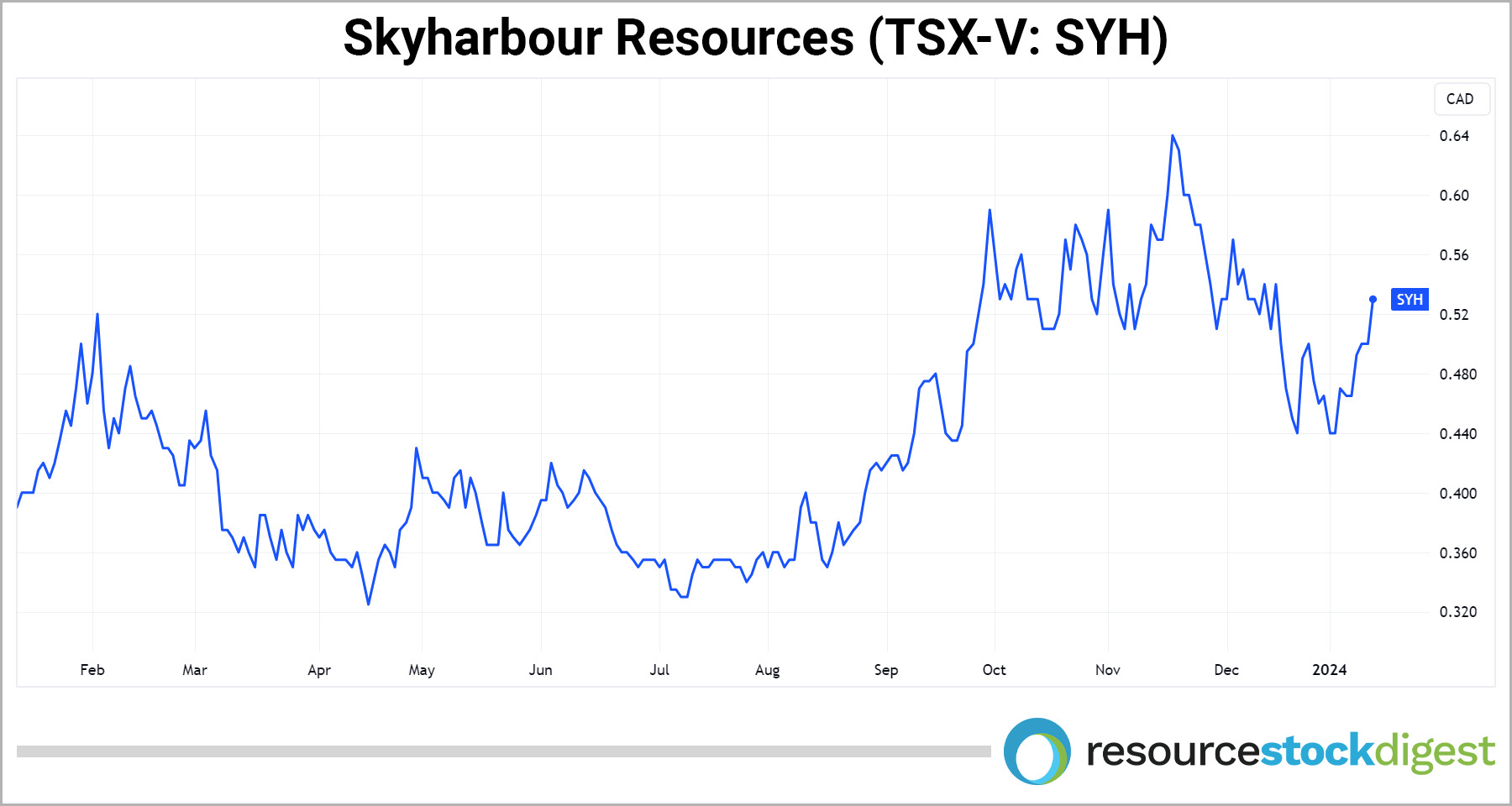 Enter Skyharbour Resources Ltd. (TSX-V: SYH)(OTC: SYHBF).