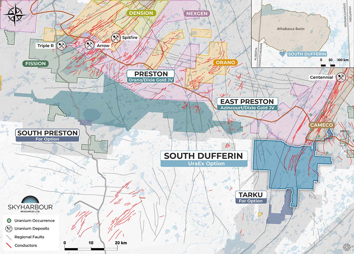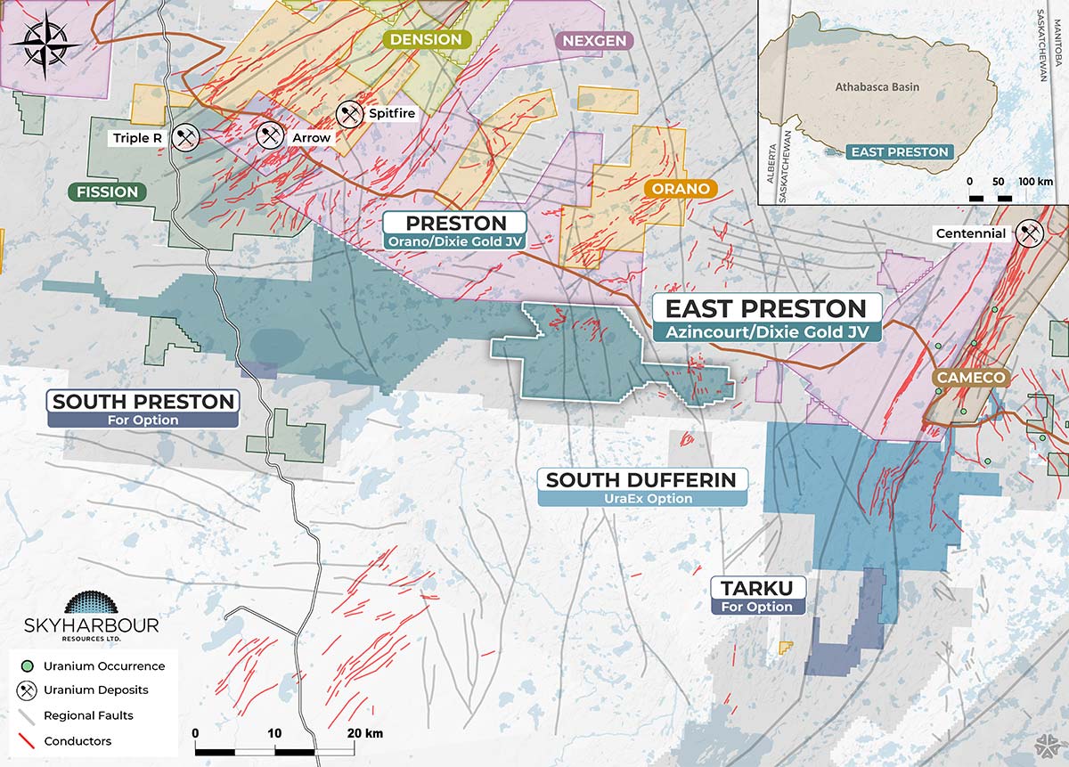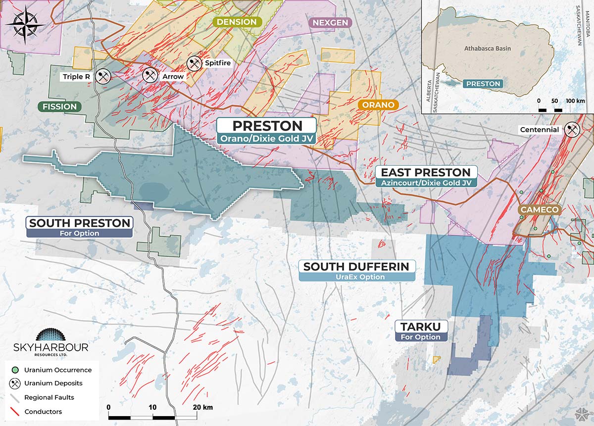 Skyharbour is joint-ventured with industry-leader Orano Canada Inc. at the Preston Uranium Project whereby Orano — France's largest uranium mining and nuclear fuel cycle company — has earned a 51% interest by way of exploration expenditures and cash payments. Skyharbour currently holds a 25.6% interest in the project.