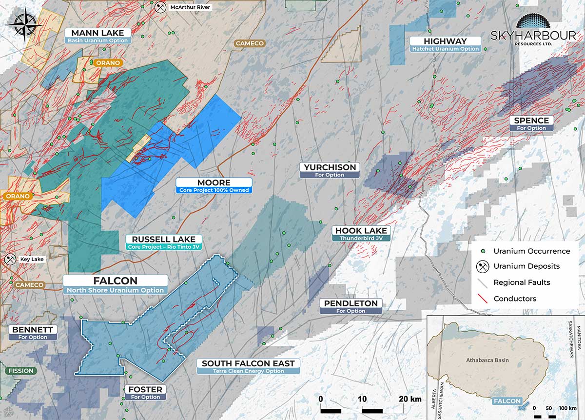 - Falcon: Option partnership with TSX-V-listed North Shore Uranium