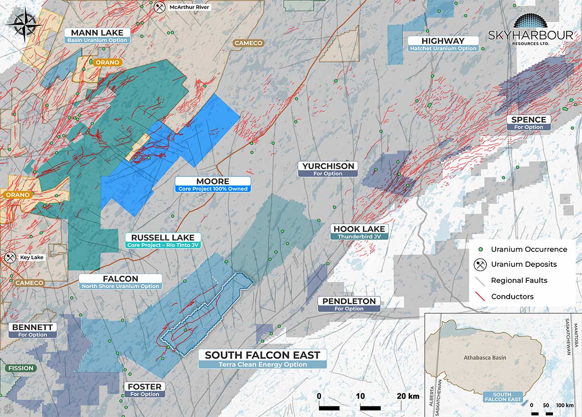 - South Falcon East: Option partnership with TSX-V-listed Terra Clean Energy Corp. (previously Tisdale)