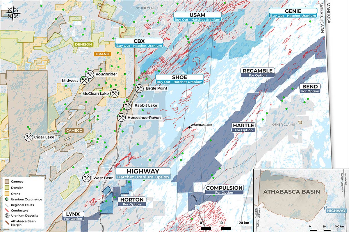 “We are excited to enter into this partnership with Hatchet Uranium Corp. as they advance and fund these exploration properties going forward. We are confident in the capable team behind Hatchet as they have plenty of experience in the Athabasca Basin and we look forward to them unlocking value at these projects. We continue to execute on our strategy by adding value to our uranium project base in the Athabasca Basin through strategic partnerships and prospect generation, as well as focused exploration at our co-flagship Russell and Moore Projects.”